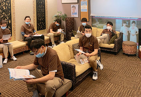 自費診療の補綴についてミーティング・受付診療受取処理等のロールプレイングを行いました。