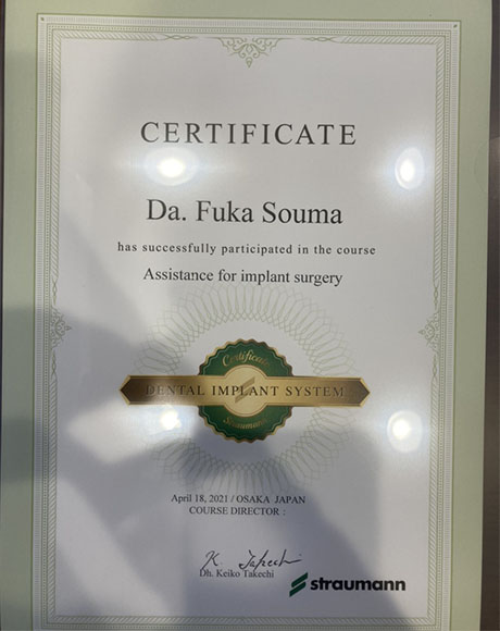 実際に受けてみると、アシスタントの手技だけではなく、インプラントの歴史から材料、天然歯とインプラントの違いや種類など、普段医院で勤務しているだけでは学べないことを学べました。