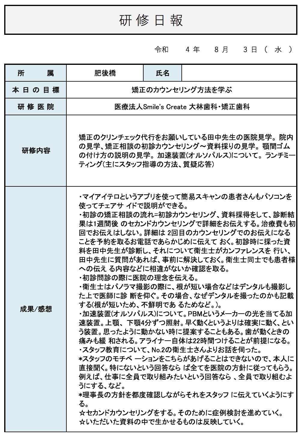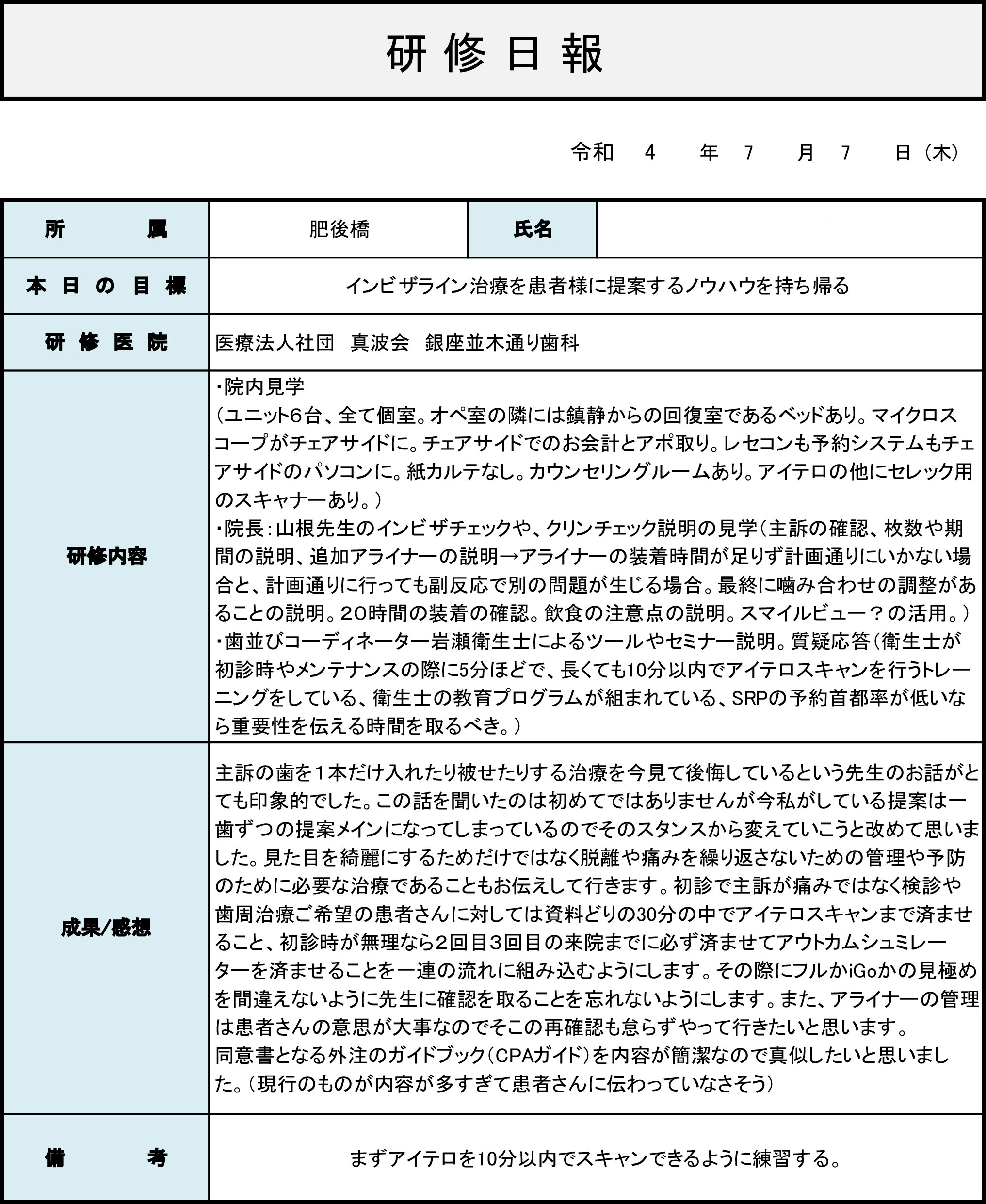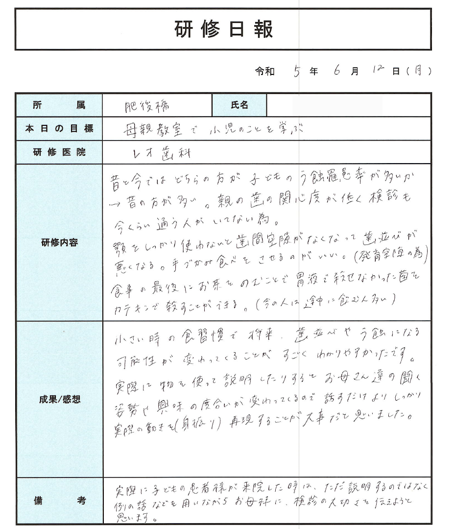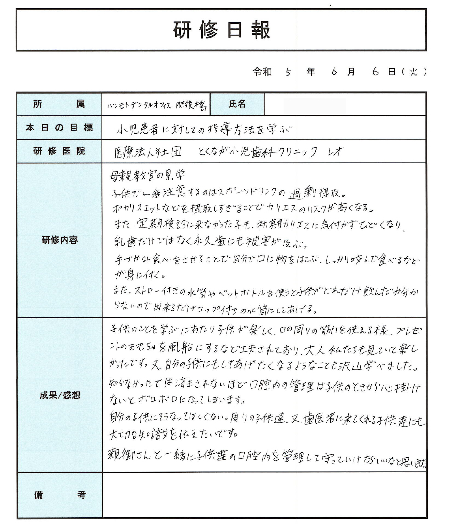 そしてその学びを医院内で生かしていきたく思います。