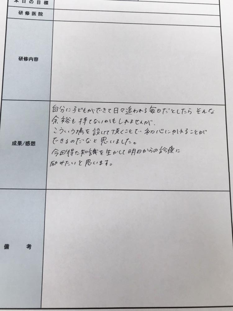 今回、院長の勧めでこのセミナーに参加しました。